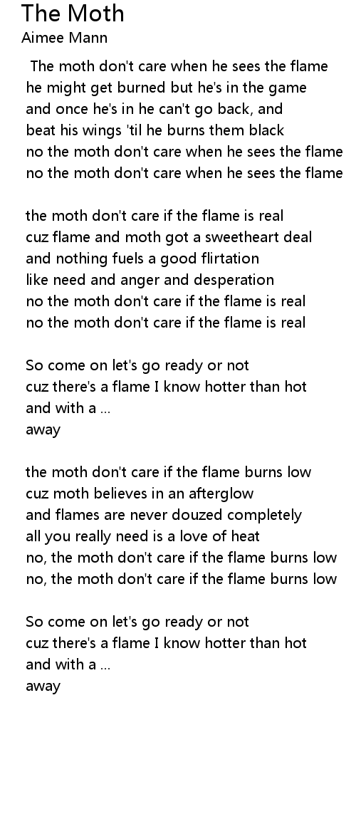 no, the moth don't care if the flame burns low |