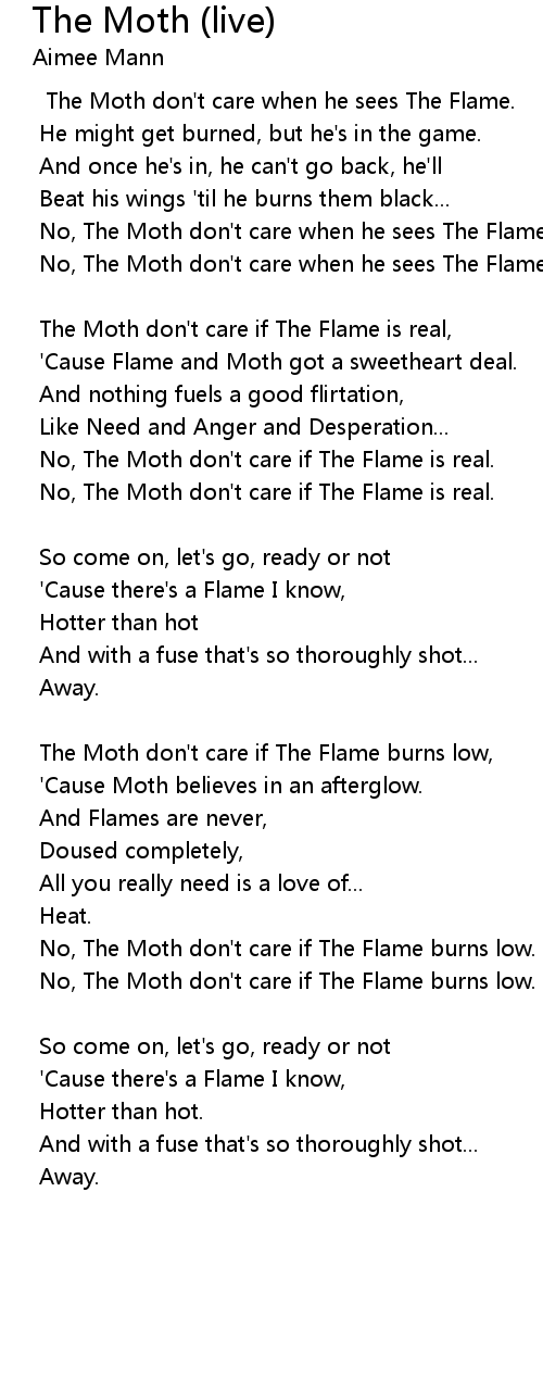No, The Moth don't care if The Flame burns low. |