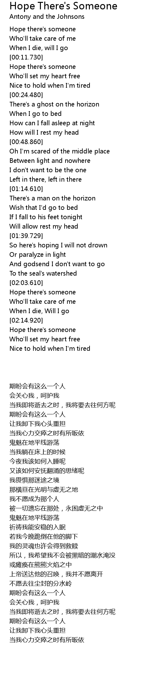 | [02:16.500] | Hope there' s someone |