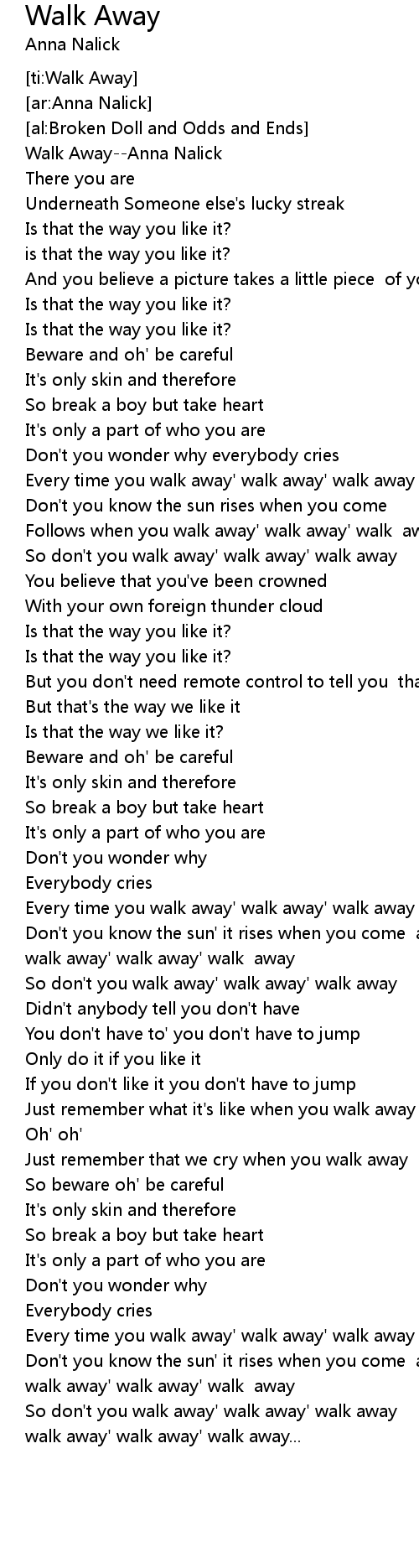 Don't you know the sun' it rises when you come and follows when you walk away' walk away' walk away |