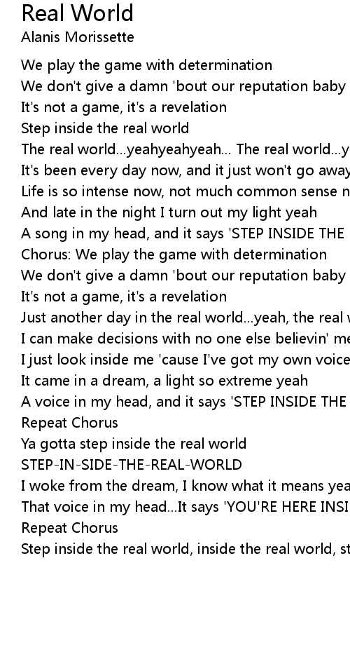 A song in my head, and it says 'STEP INSIDE THE REAL WORLD'
