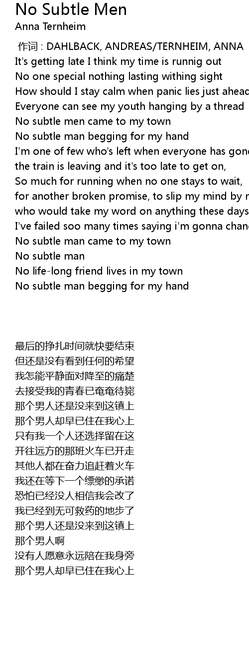 | 歌曲 | No Subtle Men |