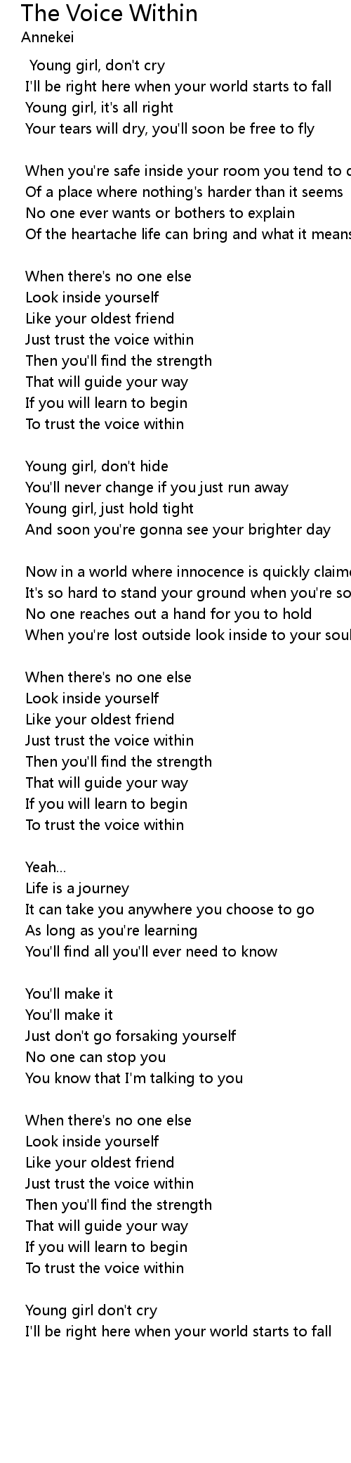 | Just trust the voice within | |