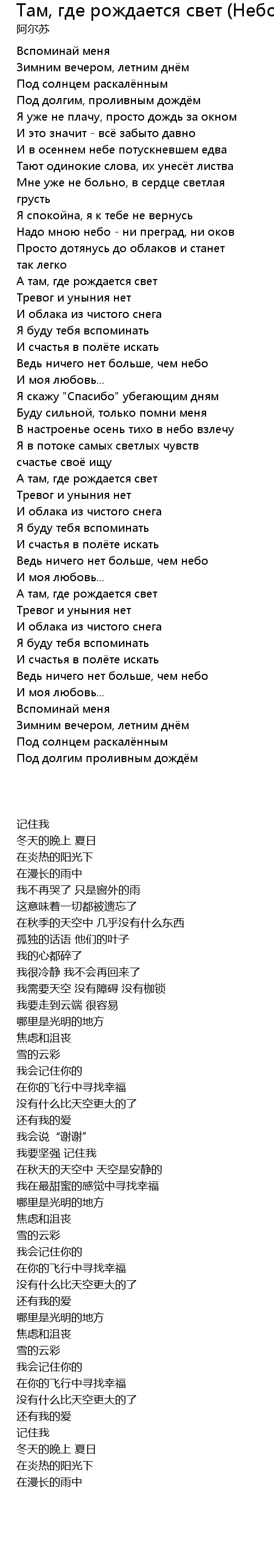 | 歌曲 | Там, где рождается свет (Небо) |