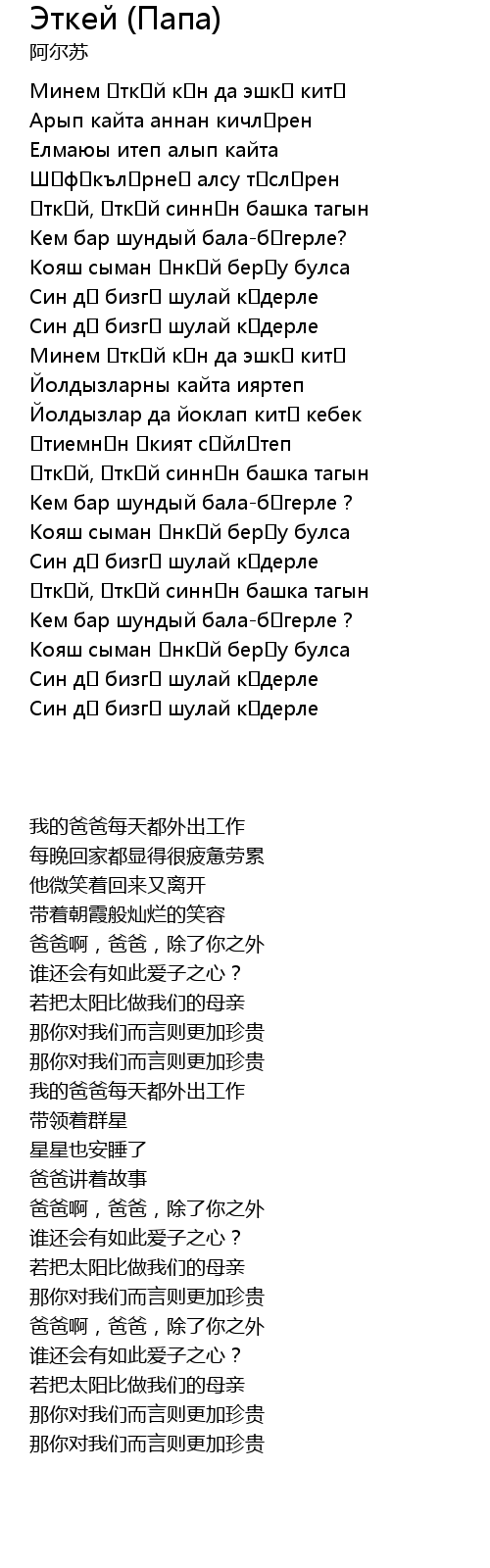 | 歌曲 | Эткей (Папа) |