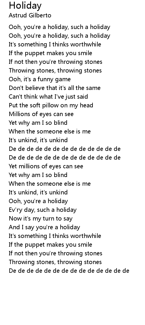 Ooh, you're a holiday, such a holiday |