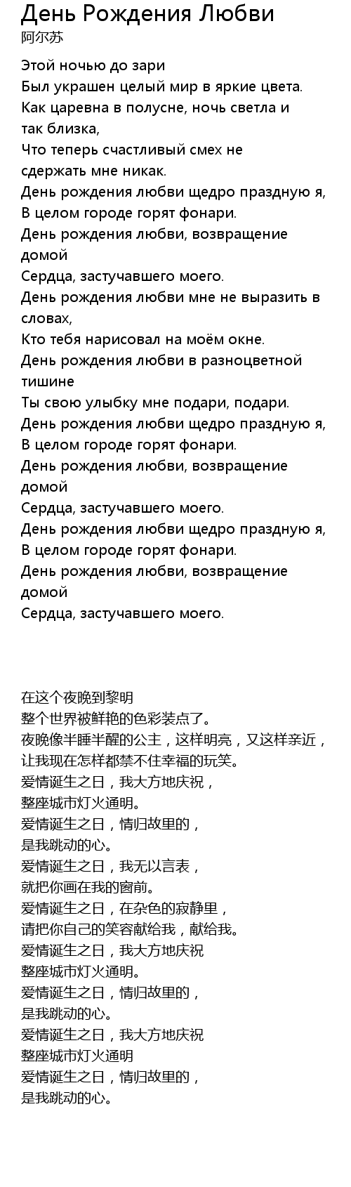 | [01:13.039] | День рождения любви мне не выразить в словах, |