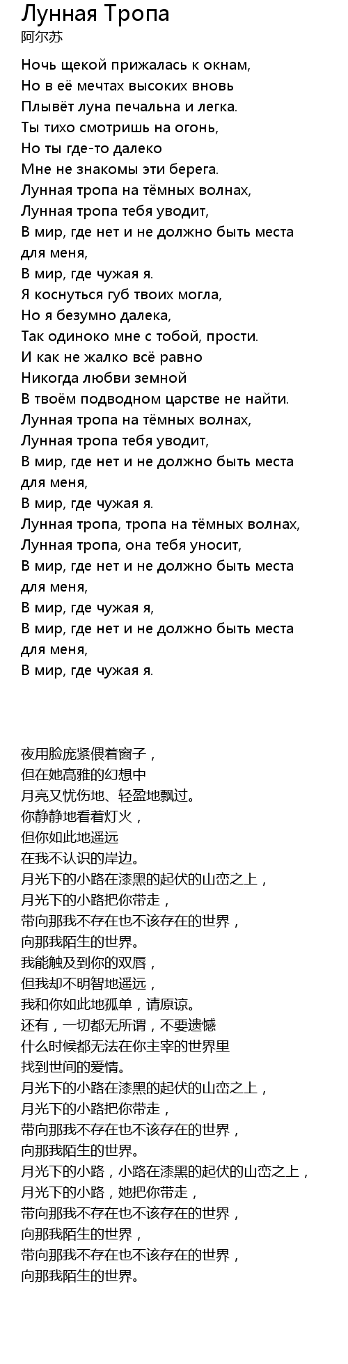| 歌曲 | Лунная Тропа |