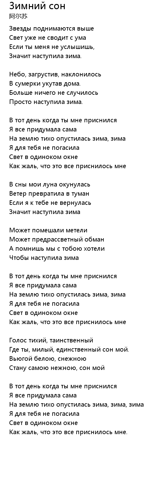 Зимний сон 歌词