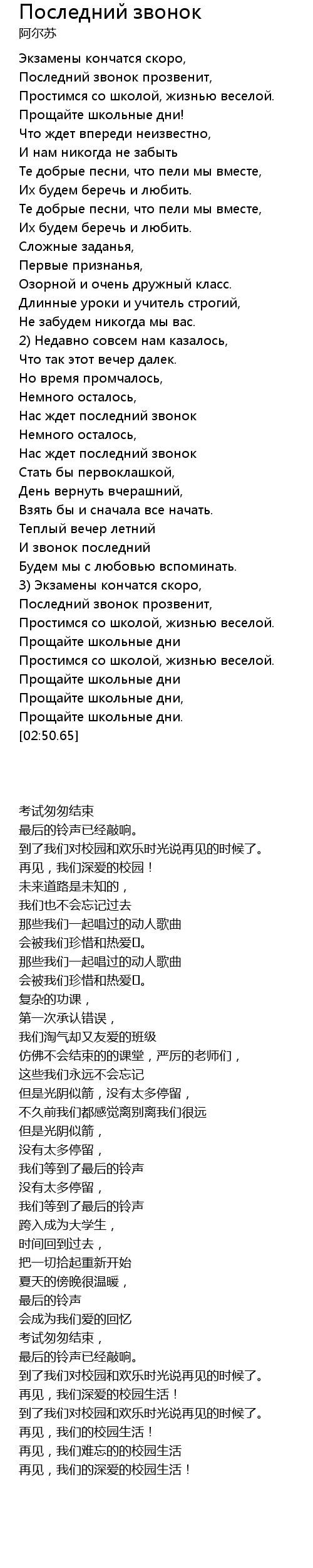 | [01:36.62] | Нас ждет последний звонок |