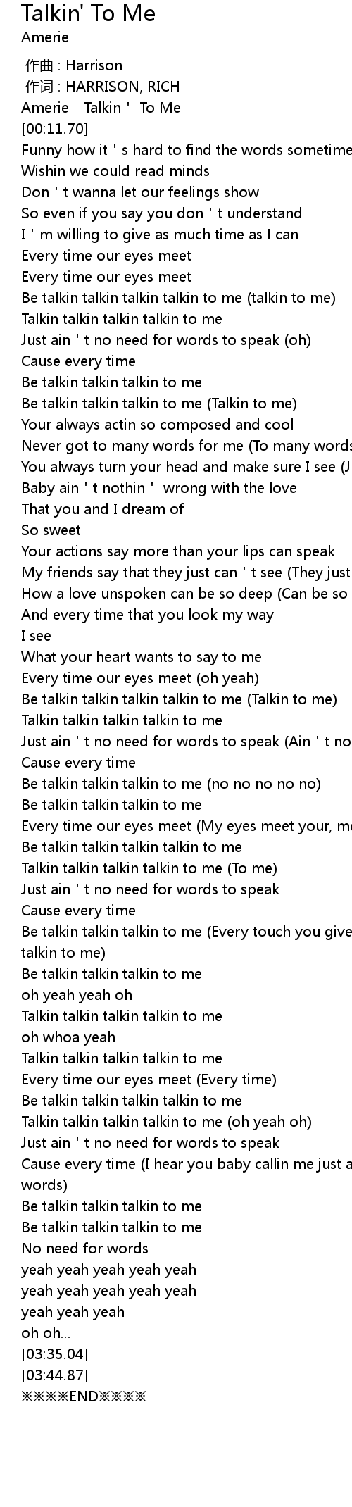 | [00:51.32] | Talkin talkin talkin talkin to me |