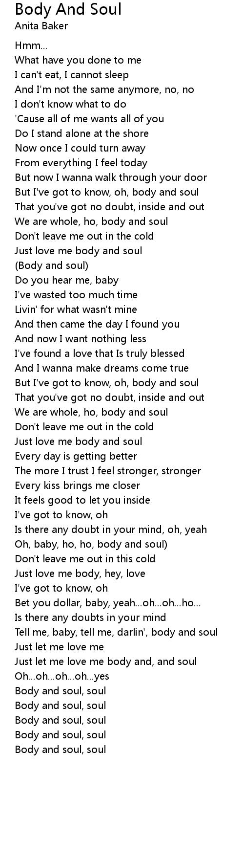 But I've got to know, oh, body and soul |