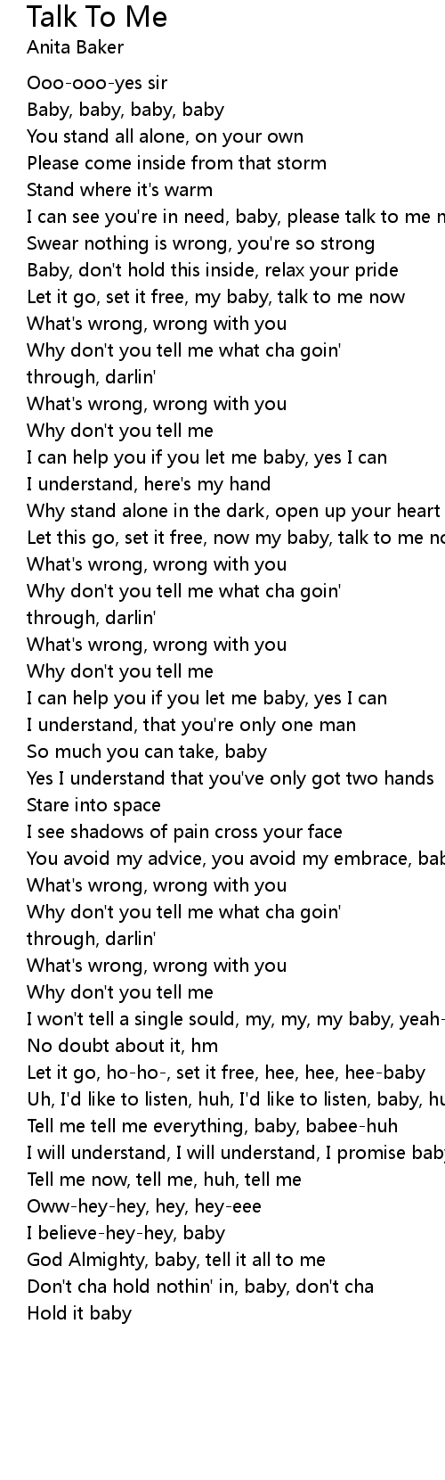 Let this go, set it free, now my baby, talk to me now |
