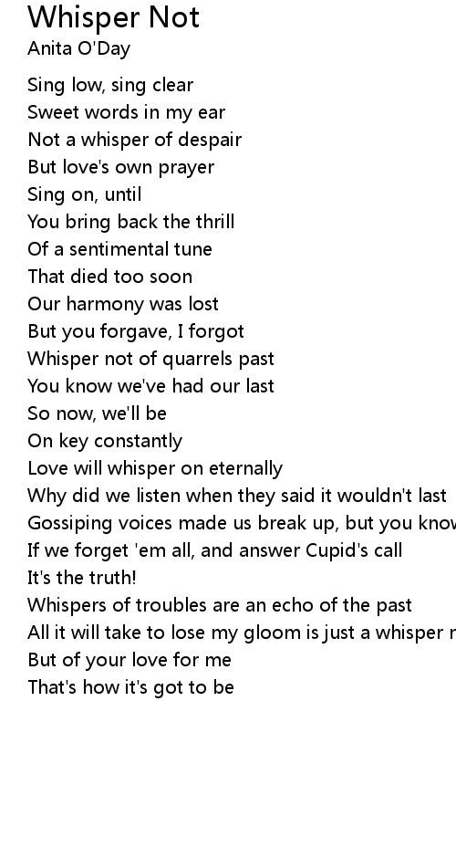 All it will take to lose my gloom is just a whisper not of rumours |
