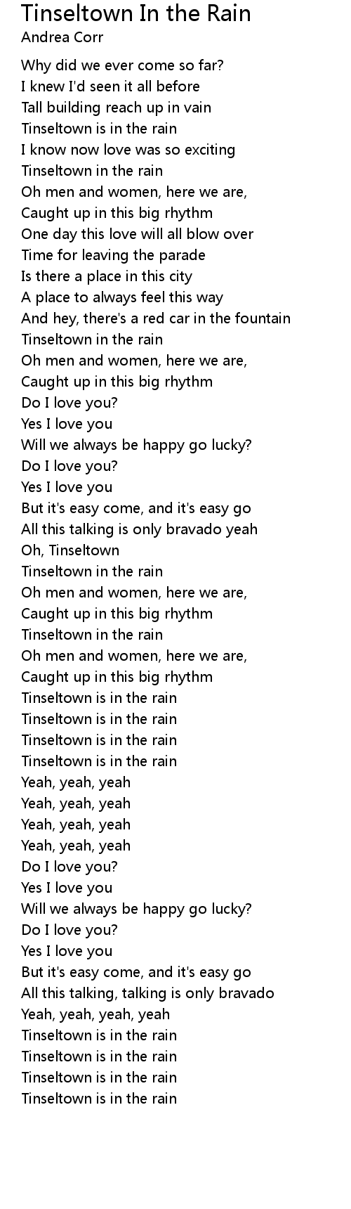 Tinseltown is in the rain |