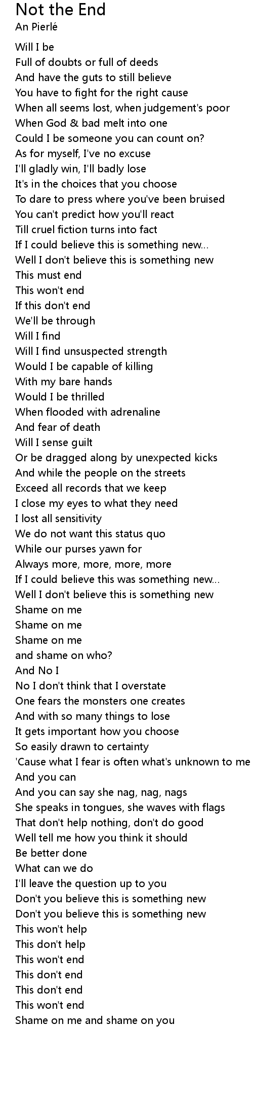 | 歌曲 | Not the End |