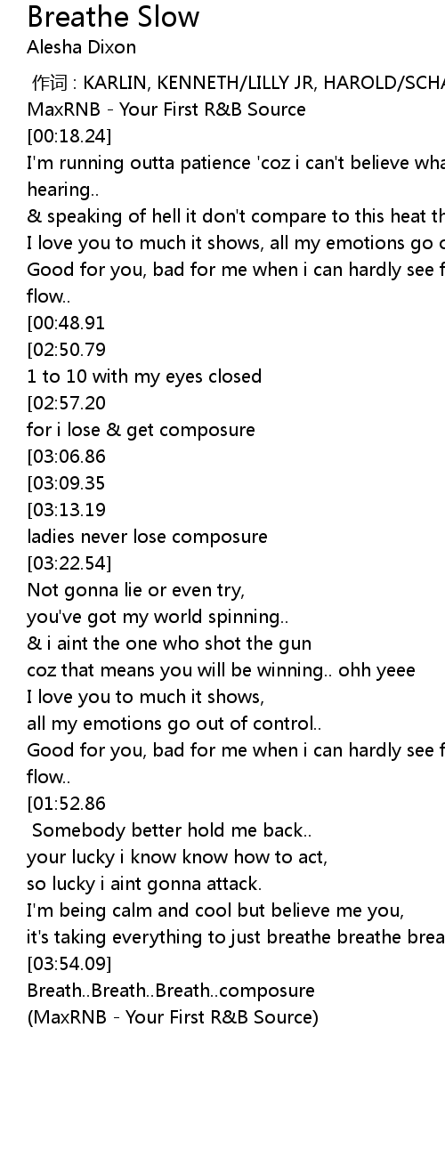 | [03:55.50] | Breath..Breath..Breath..composure |