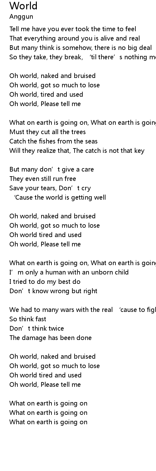 | Oh world tired and used | |