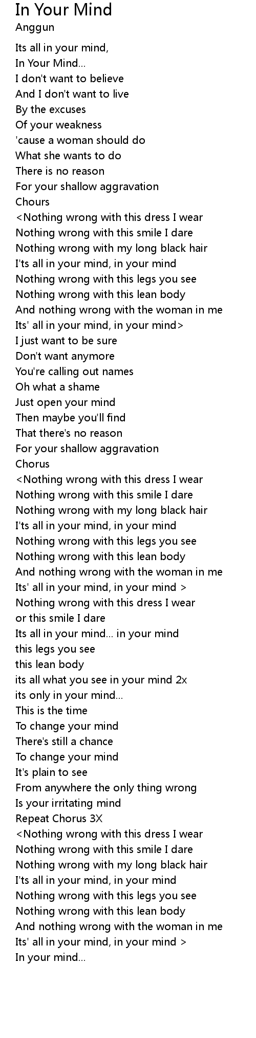 | I'ts all in your mind, in your mind | |