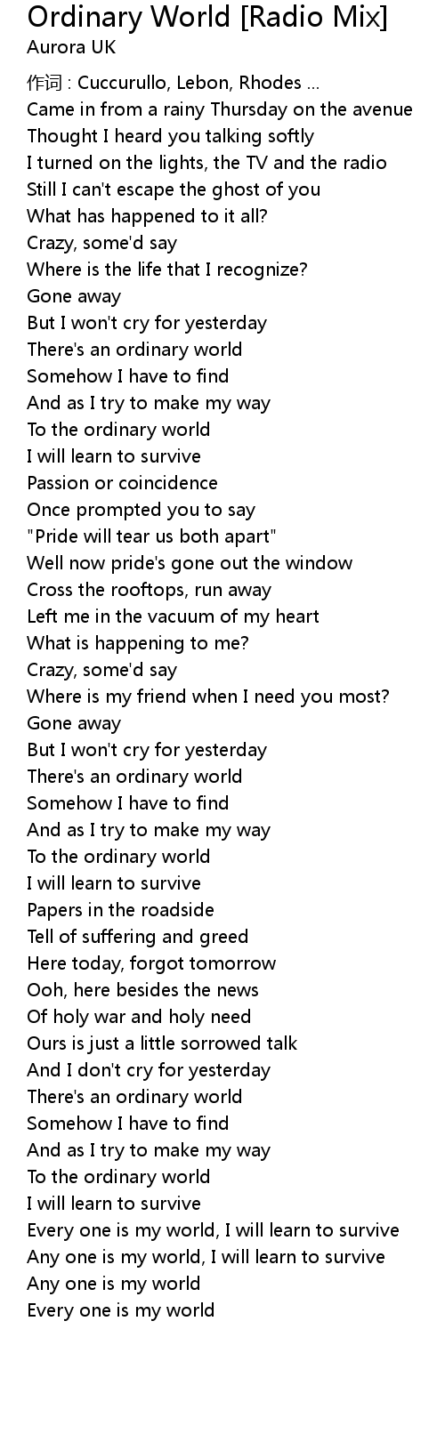 | There' s an ordinary world | |