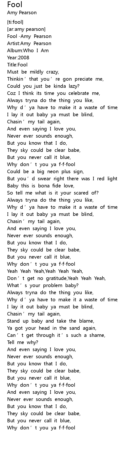 | [00:01.41] | Fool Amy Pearson |