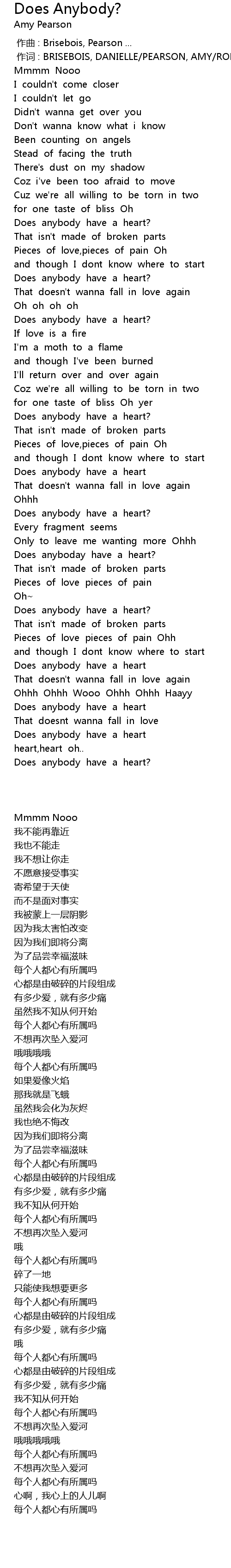 | 歌曲 | Does Anybody? |