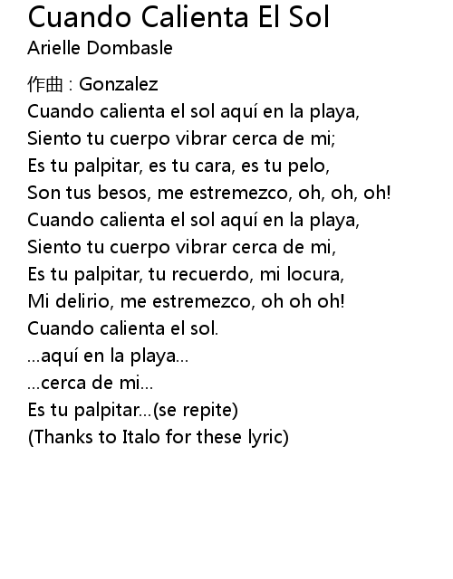 | 歌曲 | Cuando Calienta El Sol |