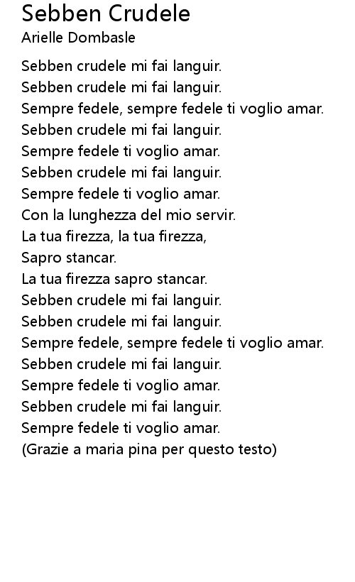 Sebben crudele mi fai languir. |