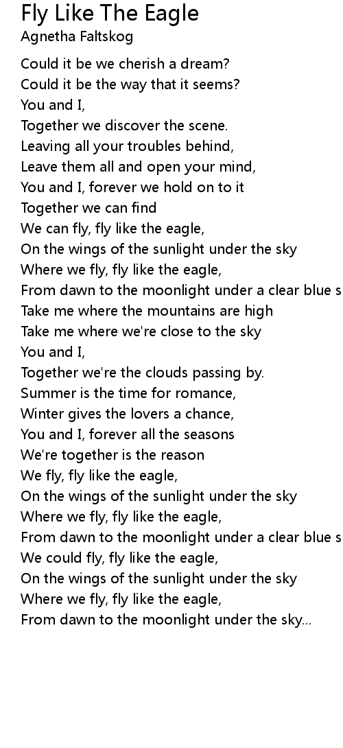 We fly, fly like the eagle, |