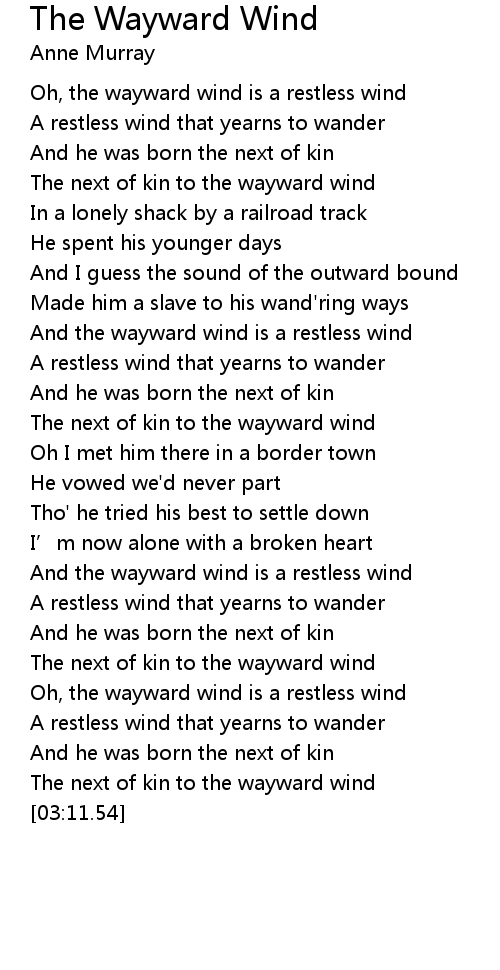 | [01:56.53] | And the wayward wind is a restless wind |