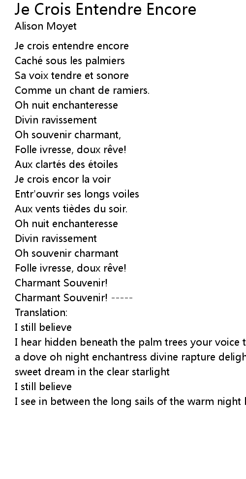 | 歌曲 | Je Crois Entendre Encore |