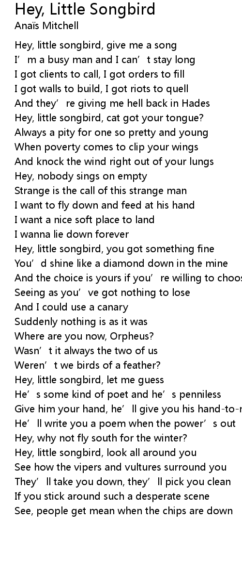 | 歌曲 | Hey, Little Songbird |