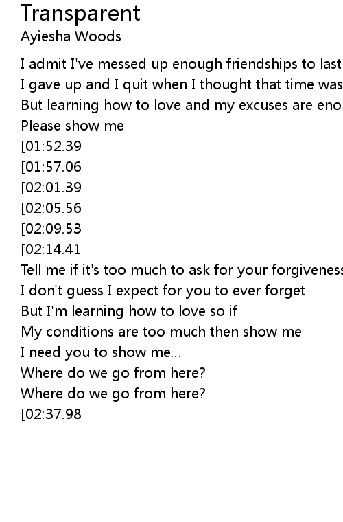 | [03:02.21][02:14.41][01:13.31] | Oh as transparent as I can be… |