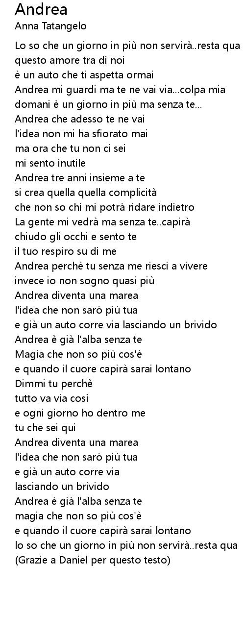 | Andrea mi guardi ma te ne vai via... colpa mia | |