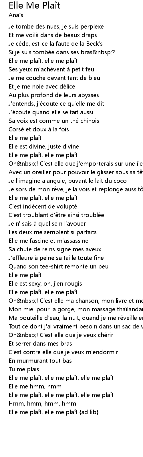 | Elle me pla t, elle me pla t, elle me pla t | |