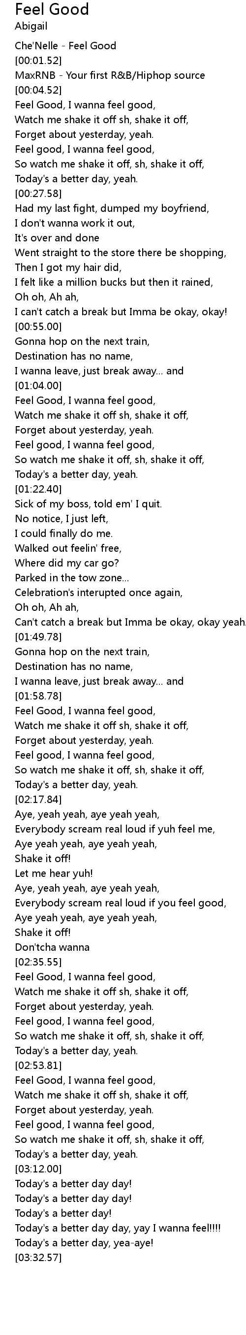 | [00:00.52] | Che'Nelle - Feel Good |