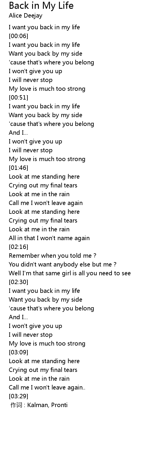 | [00:03] | I want you back in my life |