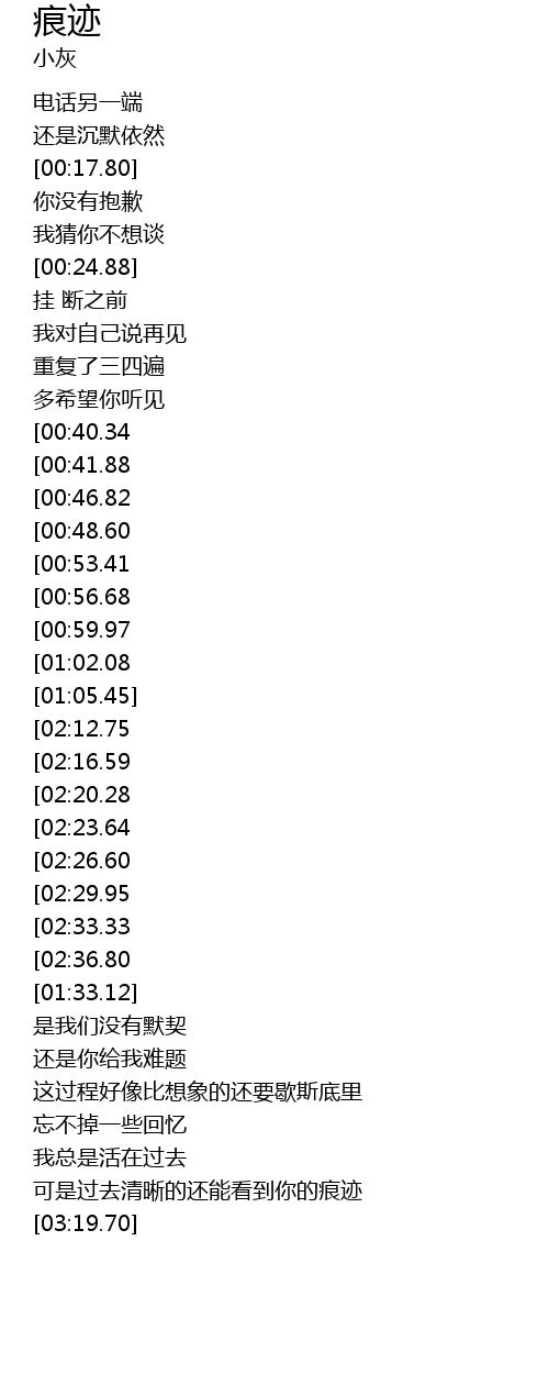 | [03:16.81][02:36.80][01:30.13] | hai neng kan dao ni de hen ji |