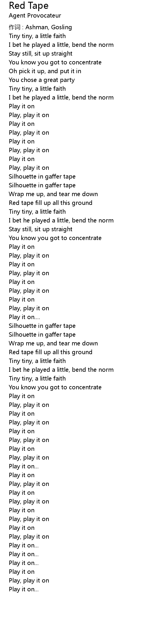 | 歌曲 | Red Tape |