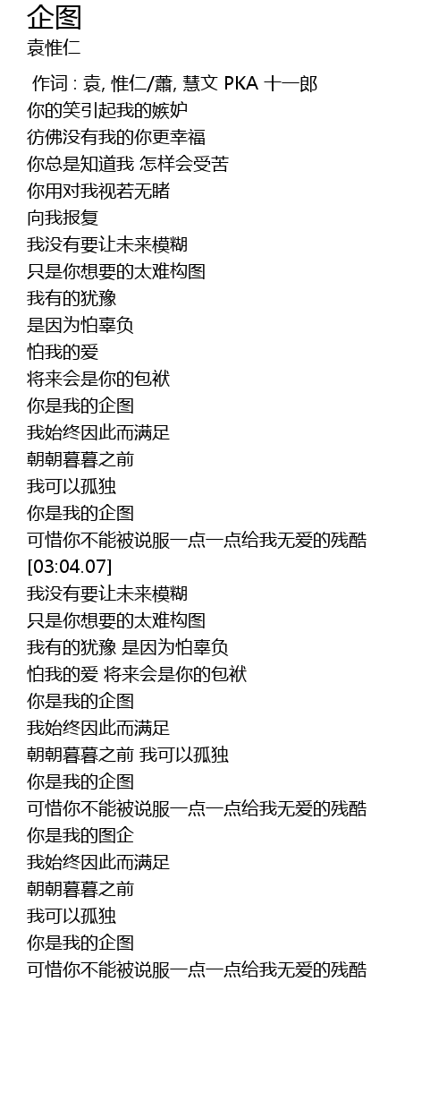 | [03:42.19] | 你是我的企图 |