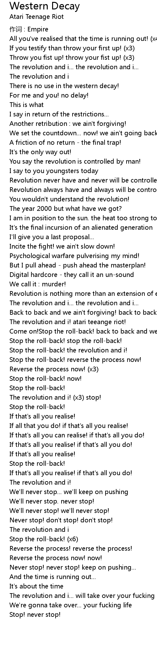 | 歌曲 | Western Decay |