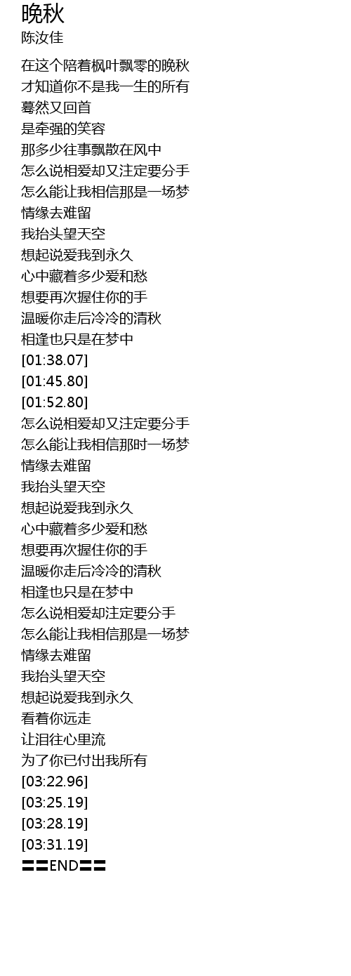 [00:27.00] 在这个陪着枫叶飘零的晚秋
