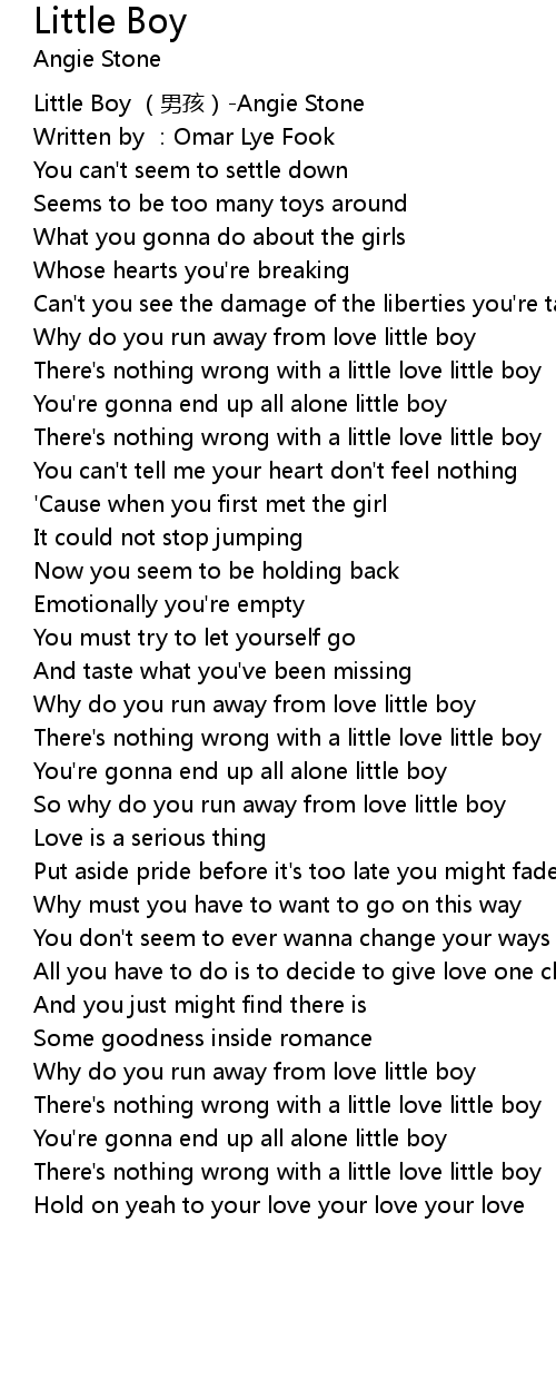 | [00:00.00] | Little Boy (男孩)-Angie Stone |