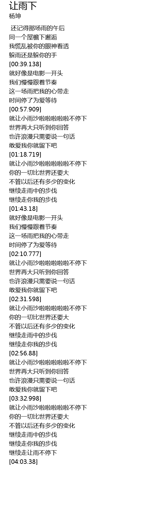 | [03:33.889] | 就让小雨沙啦啦啦啦啦不停下 |