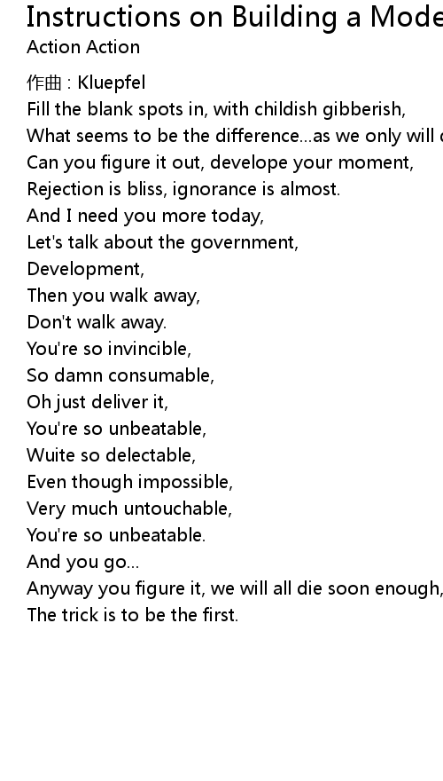 | 歌曲 | Instructions on Building a Model Airplane |