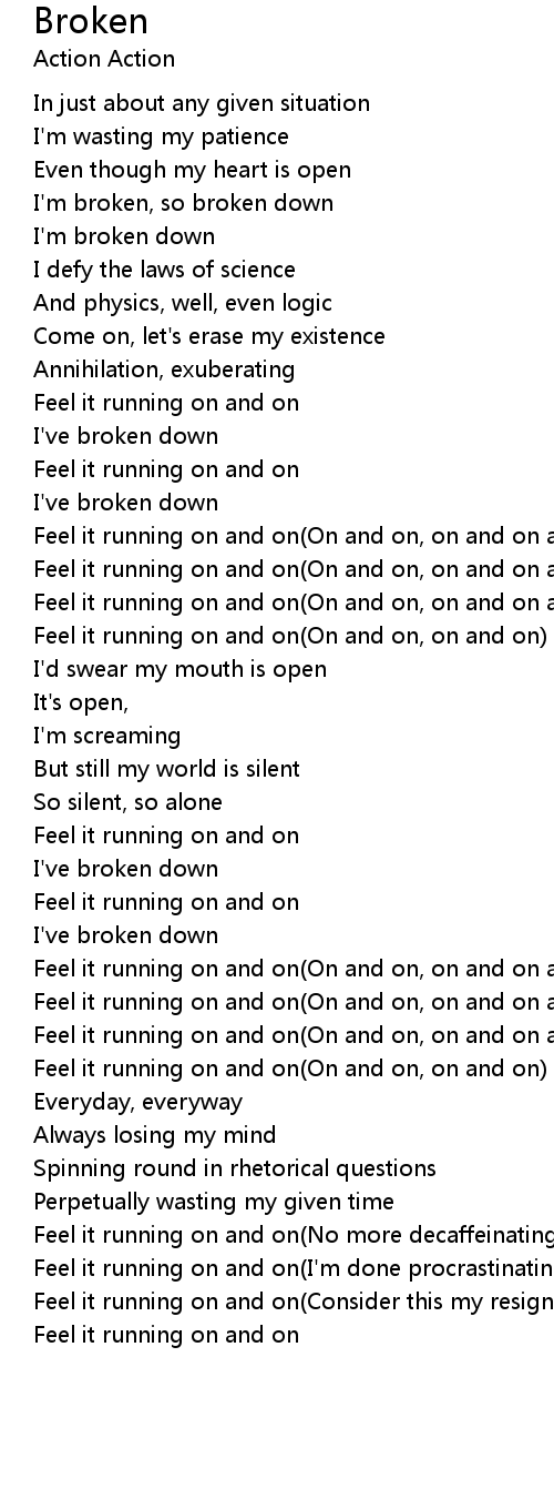 I'm broken, so broken down |