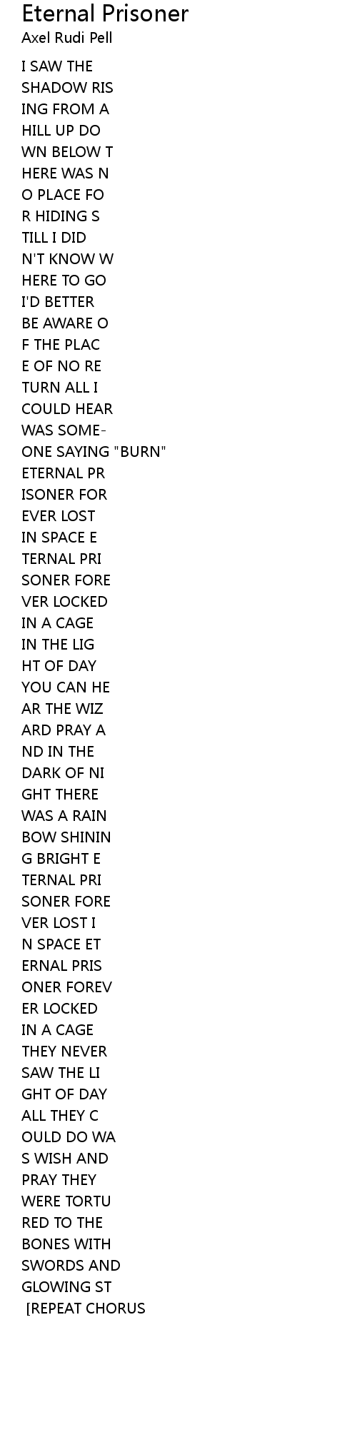 | 歌曲 | Eternal Prisoner |
