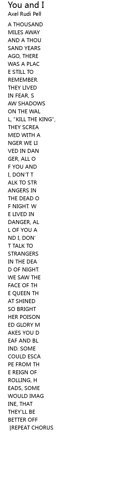 | DEAD. [REPEAT CHORUS] [REPEAT CHORUS] |