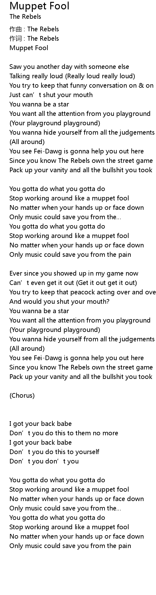 | 歌曲 | Muppet Fool |