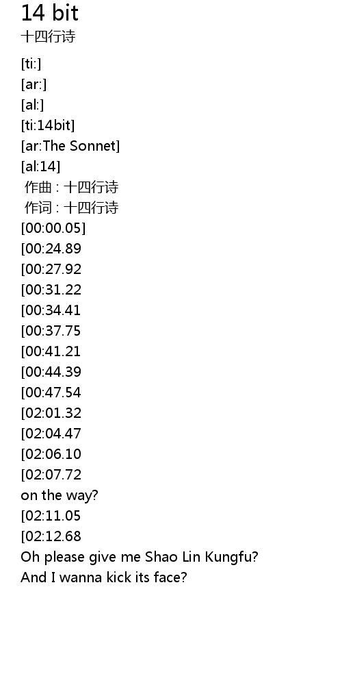 | [00:00.001] | zuò cí : shí sì háng shī |